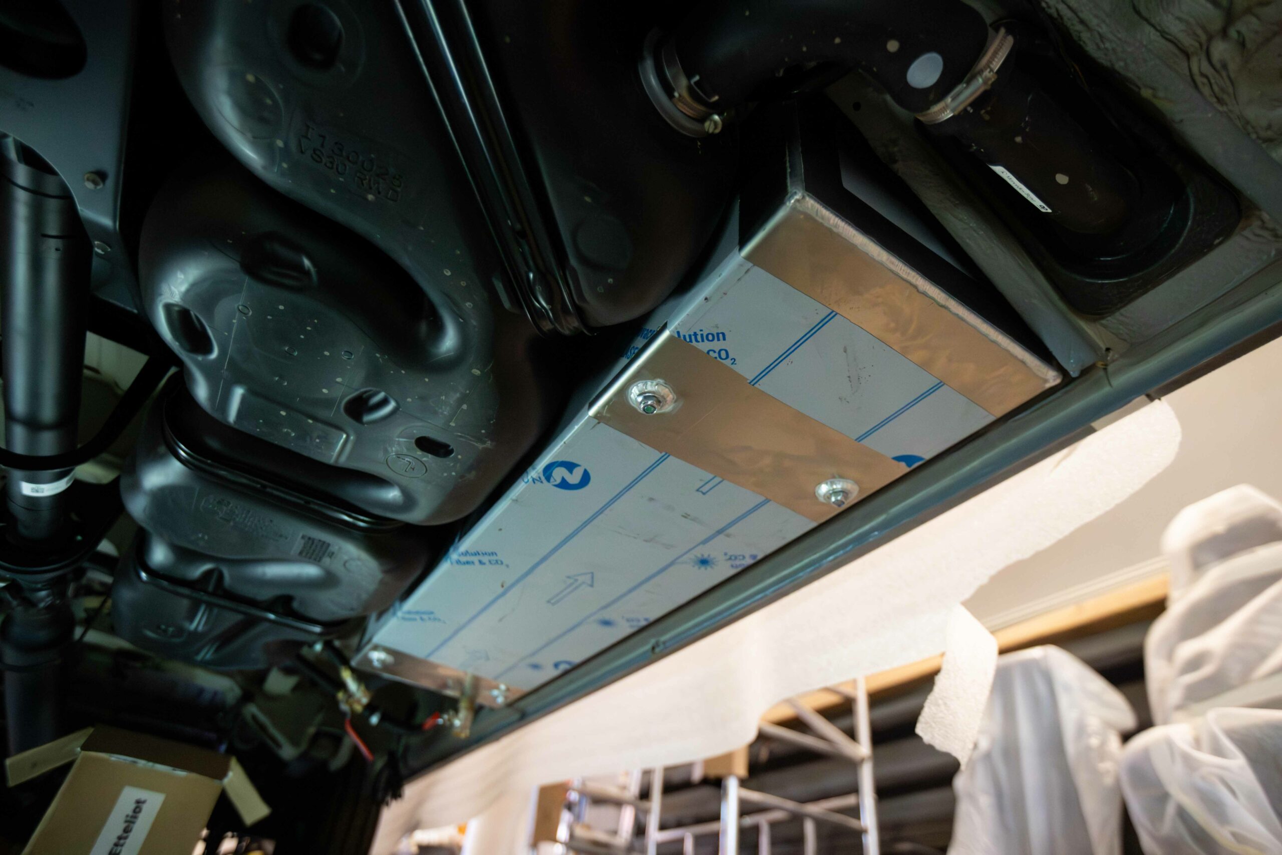Nos ateliers mécaniques permettent l’installation de tous les accessoires extérieurs (marchepieds, galeries, stores, suspensions, pneus, etc.), mais aussi les interventions sous châssis grâce à nos fosses intégrées : pose de cuves d’eaux, protection, circuits, renforcements…